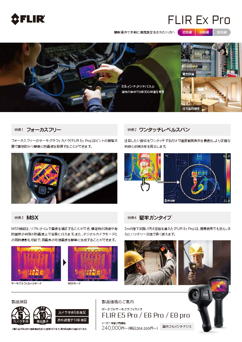 ExProシリーズは、広角レンズでタッチパネル操作で使い勝手を向上させた携帯用小形熱画像カメラです。